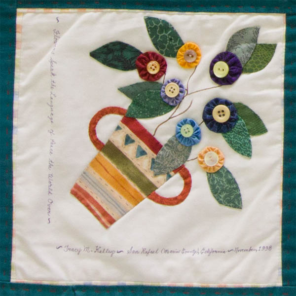 As I was designing and sewing this simple square, I was thinking maybe the recent (limited) successful peace talks have helped settle the issues which have torn the Middle East apart for so long. Then, when today's news included another story of a car bomb, I had to, once again, come to realize that we have a ways to go before peace can even be imagined, much less envisioned in the area, given the combination of volatility and fragility. Maybe if we could all just stop our busy little activities long enough to think these issues over, and perhaps set some goals, we'd be on the same track to resolution and to a lasting peace for everyone, everywhere. Every person deserves it; everyone needs peace.