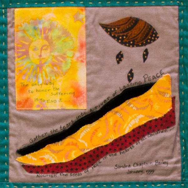 During the workshop for making a quilt square for our hope of peace in the Middle East, I felt overwhelming sadness and struggled to say something hopeful in my attempt.