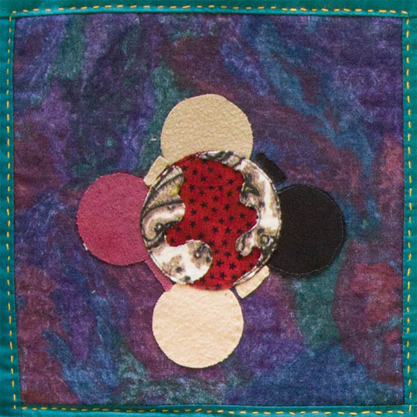 Yes! We can live in peace and yes, we can share each others' sorrows but we can certainly live in harmony. I have made this quilt to express my feelings of strength, courage and hopefulness. In my frame I joined different kinds of people with different kinds of colour.